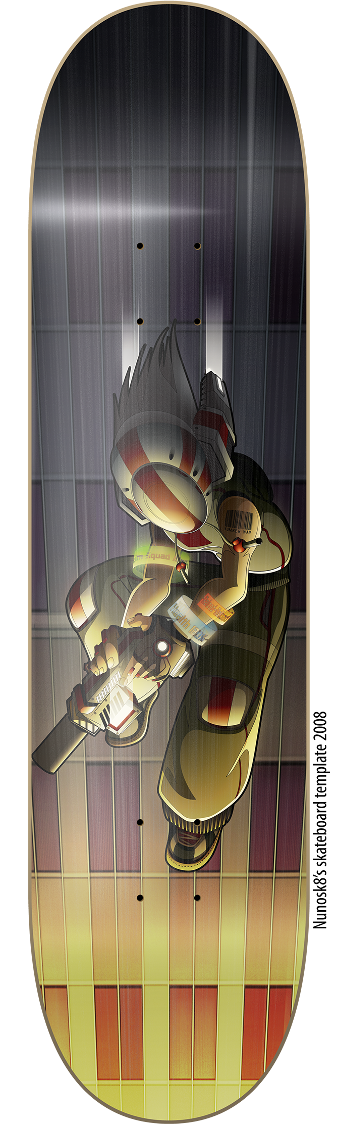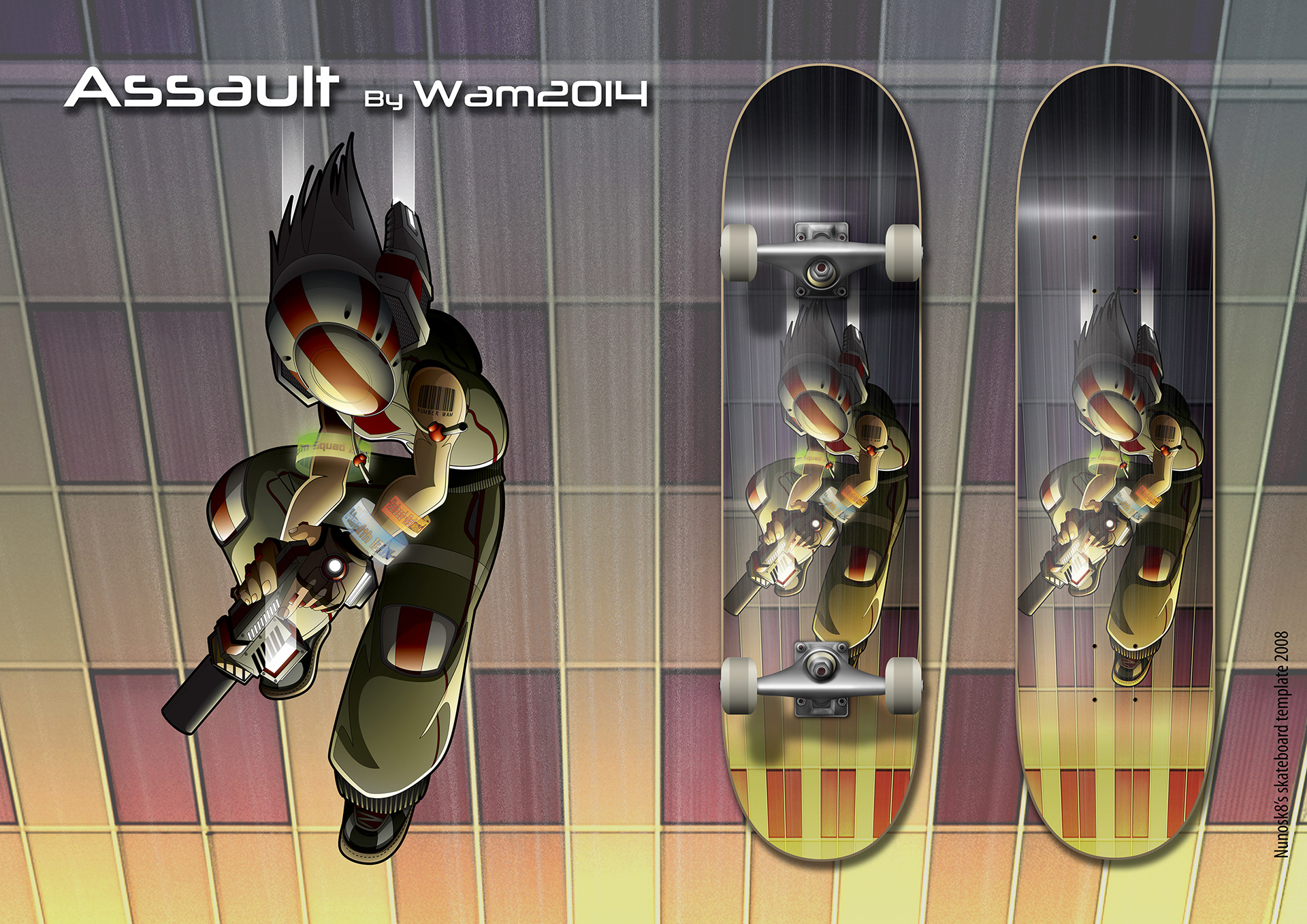 skateboard design inspired by "Assault" vector artwork, Wam2014