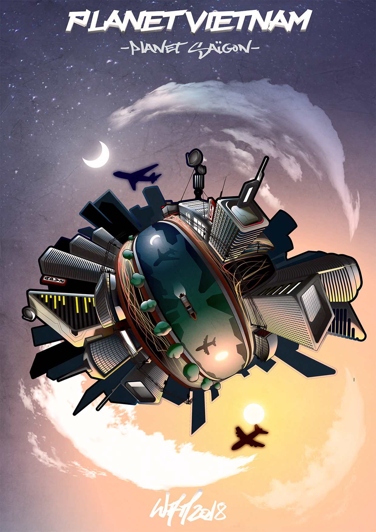 "Planet Saïgon" - Planet Vietnam serie - vector artwork by Wam2018.